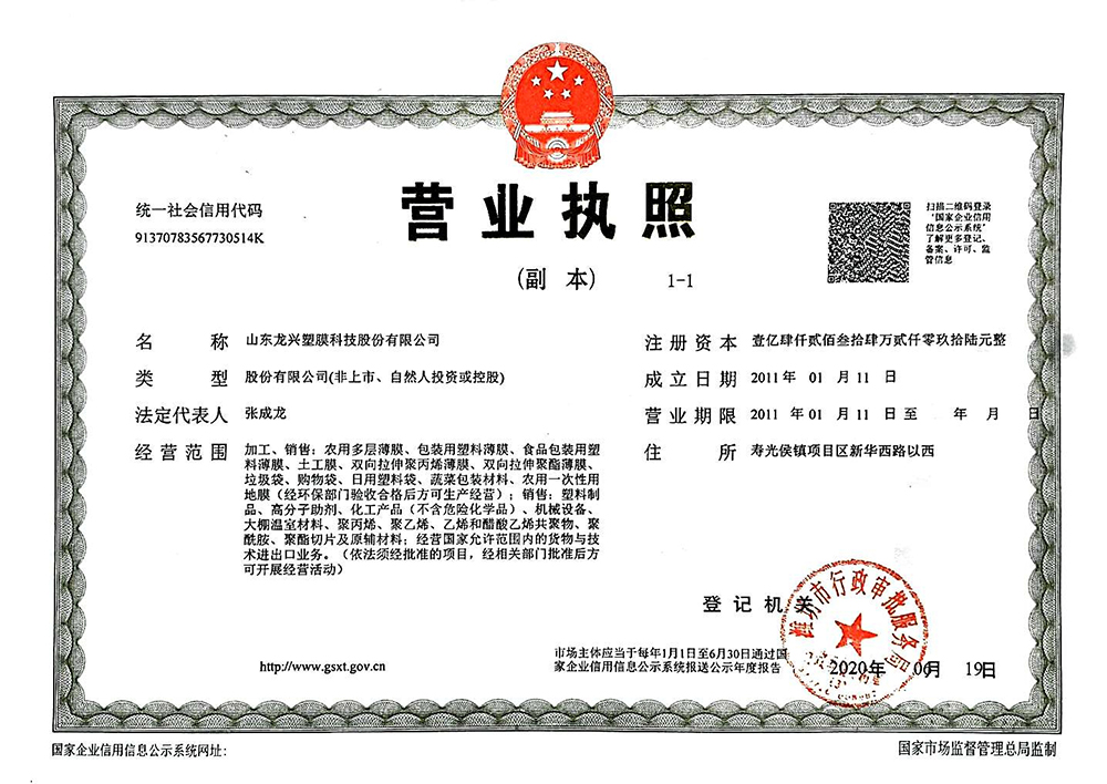 山東龍興塑膜科技股份有限公司前身為山東壽光龍興農(nóng)膜有限公司組建于2011年,2018年10月重組,目前是壽光市國(guó)有控股公司、高新技術(shù)企業(yè),是專業(yè)生產(chǎn)高檔農(nóng)用薄膜、工業(yè)用薄膜的企業(yè),是一家以產(chǎn)品制造為主,集科研開(kāi)發(fā)、產(chǎn)品設(shè)計(jì)、技術(shù)服務(wù)于一體的綜合性企業(yè)。公司現(xiàn)有職工228人,各類(lèi)工程技術(shù)人員97人,管理人員20余人,注冊(cè)資金14234.2096萬(wàn)元,總資產(chǎn)102314萬(wàn)元,目前是壽光市國(guó)有控股公司、高新技術(shù)企業(yè)。公司是中國(guó)塑料加工工業(yè)協(xié)會(huì)農(nóng)膜專業(yè)委員會(huì)會(huì)員單位,中國(guó)復(fù)合材料工業(yè)協(xié)會(huì)會(huì)員單位,中國(guó)塑料加工工業(yè)協(xié)會(huì)雙向拉伸聚酯薄膜專業(yè)委員會(huì)會(huì)員單位...